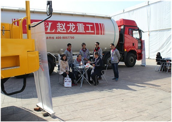 2013年11月19日,首屆中國義烏國際裝備制造業(yè)博覽會在義烏隆重開幕,逐漸發(fā)展壯大的趙龍重工,以600平米的參展面積、6臺高品質(zhì)精品展車備受參展觀眾關(guān)注。本次參展車型有12方和16方混凝土攪拌車各1輛、粉粒物料運輸車和半掛粉粒物料運輸車各1輛、礦用自卸車2輛。展會期間,大氣的展車排布引來了許多參展人員前來觀賞,并贏得了廣泛的好評。